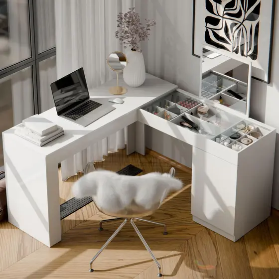 Penteadeira e Escrivaninha de Canto 136x136cm com Espelho 1 Porta Star
